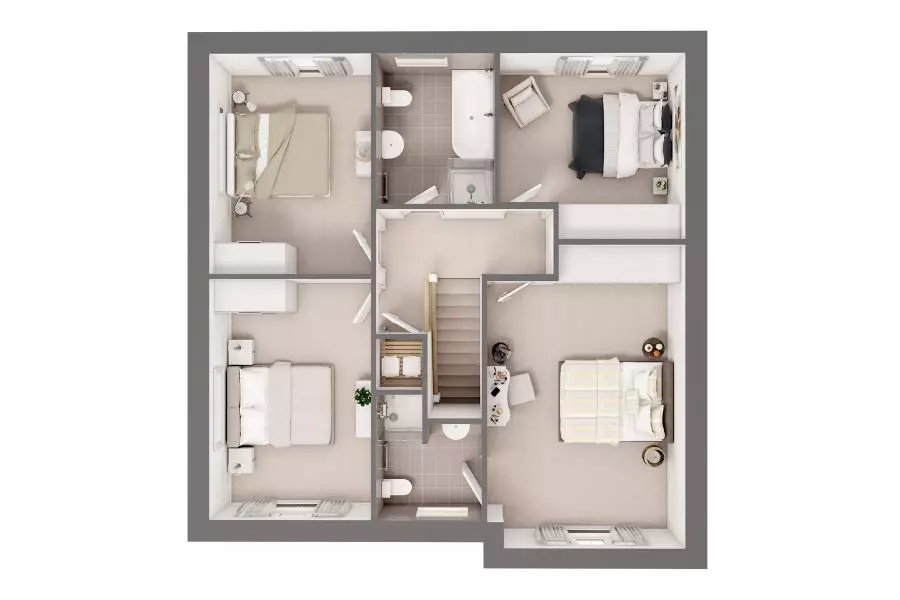Upstairs, you will find 4 bedrooms, each feeling quiet and private. The main bedroom is a spacious and luxurious retreat with its own en-suite. The other 3 bedrooms are served by a stylish family bathroom, and all are well-proportioned providing adequate space for children and teenagers to create their own escape, or for a home office. The Banbury is a high-quality home with a touch of timeless character.