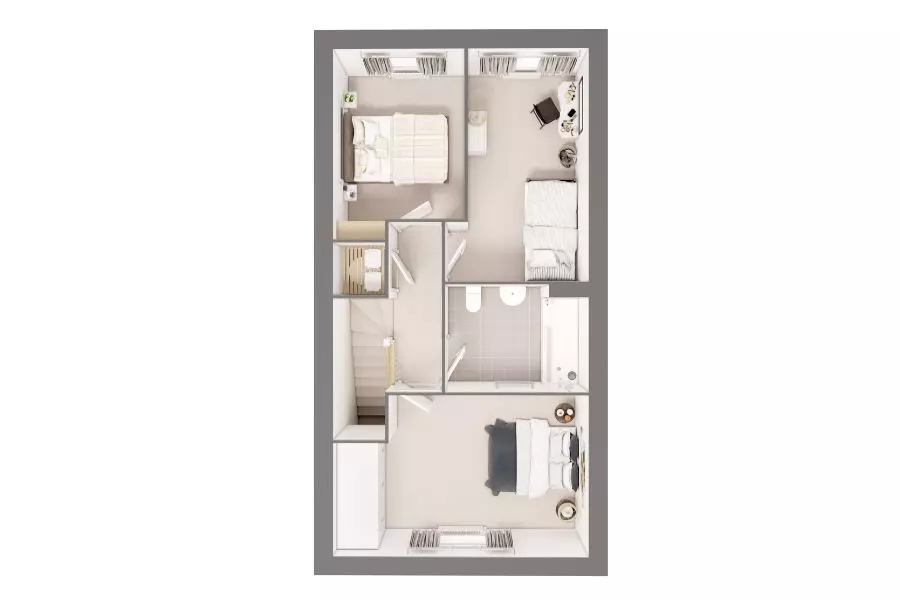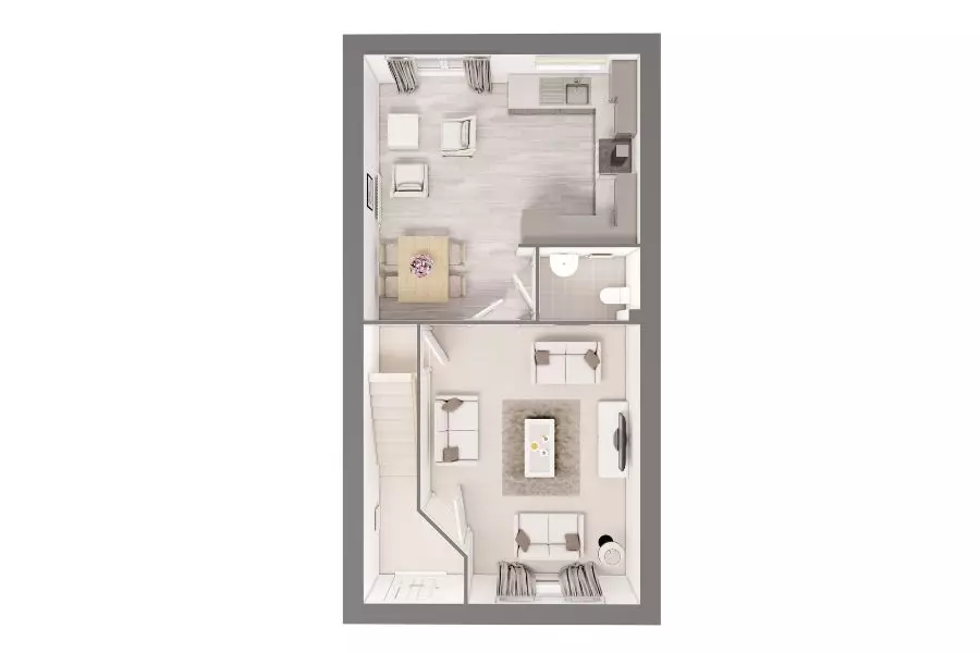 The Birch is a 3 bedroom home that is adaptable and thoughtfully planned for modern living. At the front of the house, there is a spacious and comfortable living room, ideal for quiet moments of relaxation. To make the house more social, at the rear of the home, the kitchen and dining area are open-plan, bright and welcoming, complete with French doors that open onto the garden.