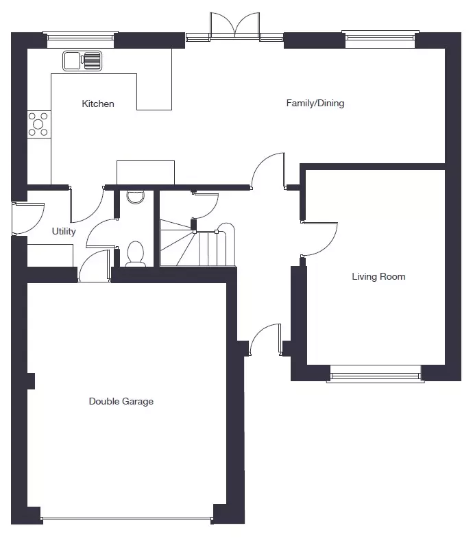 The Stratton II is a 5 bedroom detached home that balances style with practicality. On the ground floor, there is a comfortable living room, along with an open-plan kitchen, family and dining area which is perfect for entertaining. You can enter the garden through French doors which create a bright, welcoming feel to the room. There is also a utility room and WC for added flexibility.