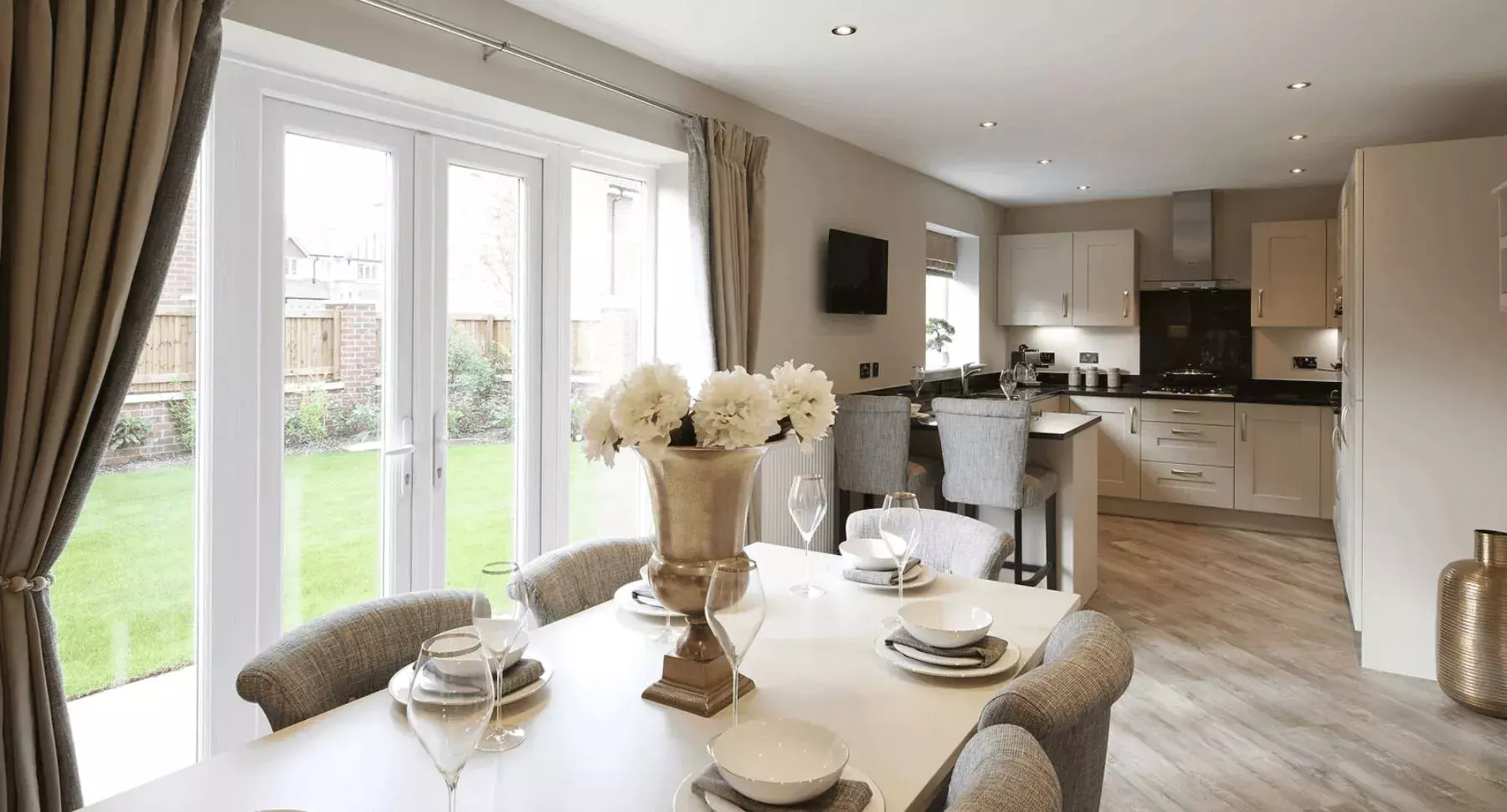 A 4 bedroom detached home with integral single garage, offering spacious family living. Its open-plan kitchen and dining space with French doors forms the heart of the home.
