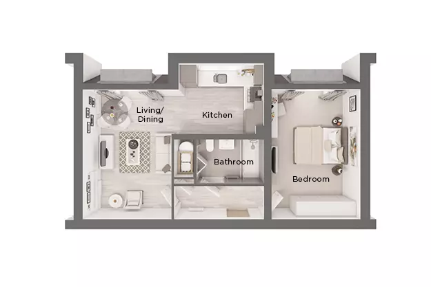 This apartment includes one large double bedroom and a modern bathroom with a large shower. As part of the exclusive Sanctuary Court community, residents benefit from a wealth of amenities, including The Clubhouse, with a private gym and spa, all supported by a 24-hour personal callout system for complete peace of mind.