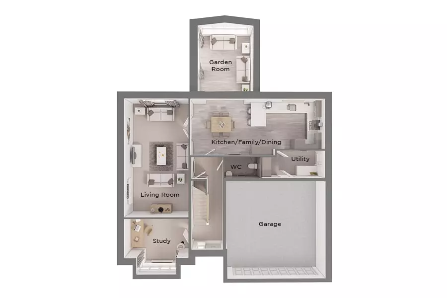 A 5 bedroom detached home designed for modern living. This versatile layout features a separate study, perfect for working from home, an integral double garage and a garden room.