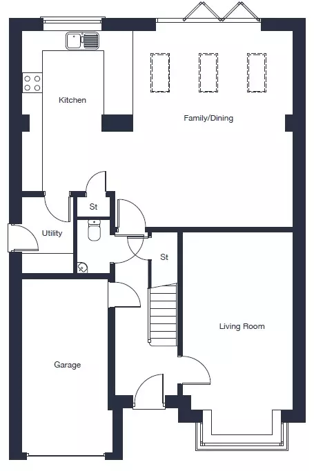 The Bentley is a spacious 4 bedroom detached home, combining classic design with modern family living. The versatile living room, complete with bay window, is the perfect spot to host guests or enjoy quiet evenings. At the heart of the home is a generous kitchen, dining and family space, with bi fold doors opening onto the garden and a separate utility room for added practicality. On the ground floor of the home you will discover ample storage, with designated storage space under the stairs and in the kitchen, dining and family room.