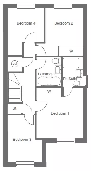 On the first floor, 4 well-proportioned bedrooms create a welcoming retreat for all in the home. The main bedroom has the added benefit of a private en-suite, with the family bathroom shared by the 3 other bedrooms. With its adaptable spaces, The Calder is ideal for a growing family.
