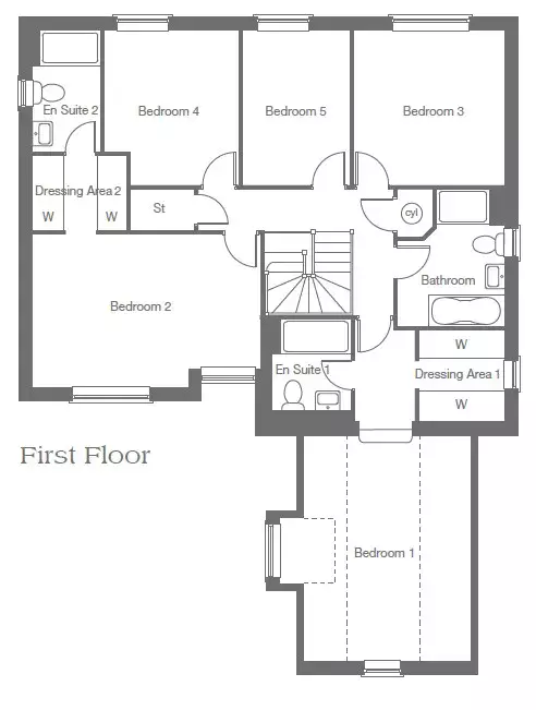 The first floor offers 5 bedrooms. Adding to the luxury nature of this home, the first and second bedroom both have a dressing area and en-suite for added privacy. The remaining 3 bedrooms are served by a generously-sized family bathroom. With its integral double garage, The Connaught II is a spacious, practical and elegant home.