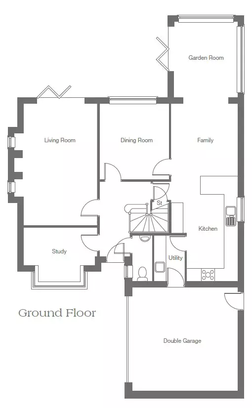 A 5 bedroom detached home with an integral double garage, combining elegance with practicality. Spacious living areas and versatile bedrooms make it ideal for modern families.